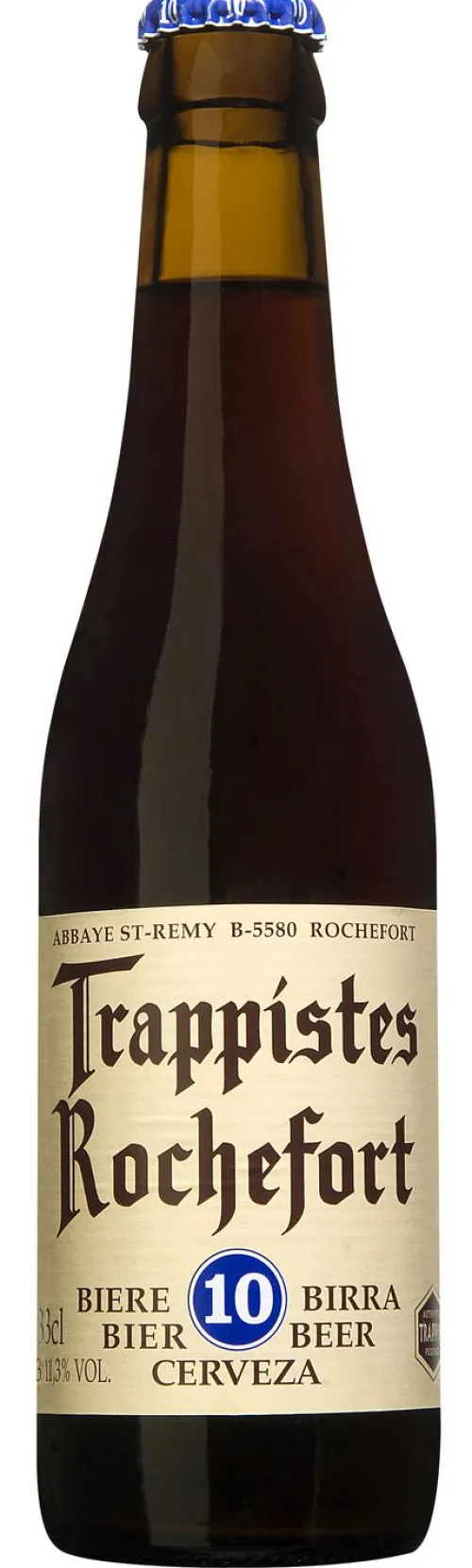 | Description | De Rochefort Trappist 10 is een krachtig bruin bier met een dieprode gloed. Het is een zeer krachtig bier met een levendig karakter. Het aroma is fruitig en moutig. De smaak van het bier is zoet-bitter. |