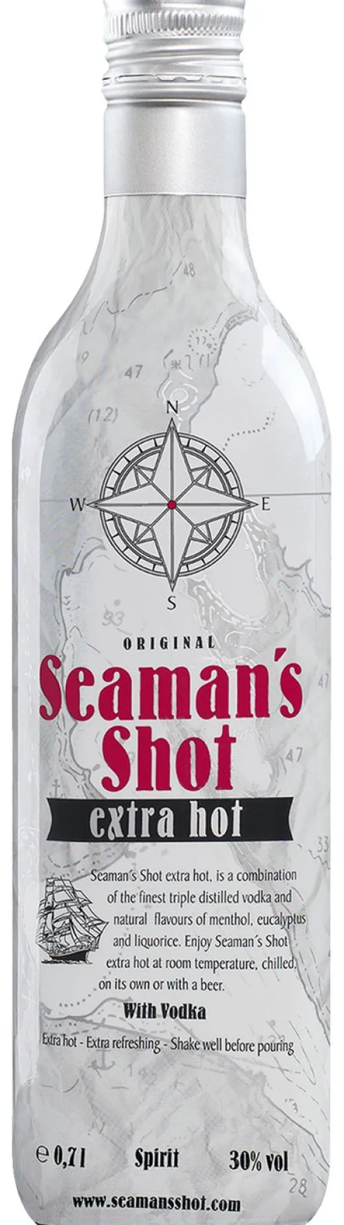 | Description | Seaman’s Shot is een mooie samenstelling van de beste drievoudig- gedestileerde wodka en natuurlijke kruiden zoals menthol en eucalyptus. Seaman’s shot is sterk en fris. |