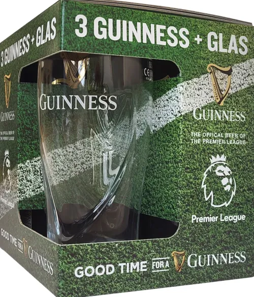 | Description | Beleef de magie van Guinness en de Premier League met deze speciale pack. 3 blikken van de iconische stout en een glas om samen de wedstrijden in stijl te beleven. Perfect voor elke voetballiefhebber. |